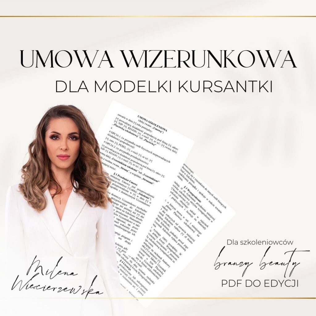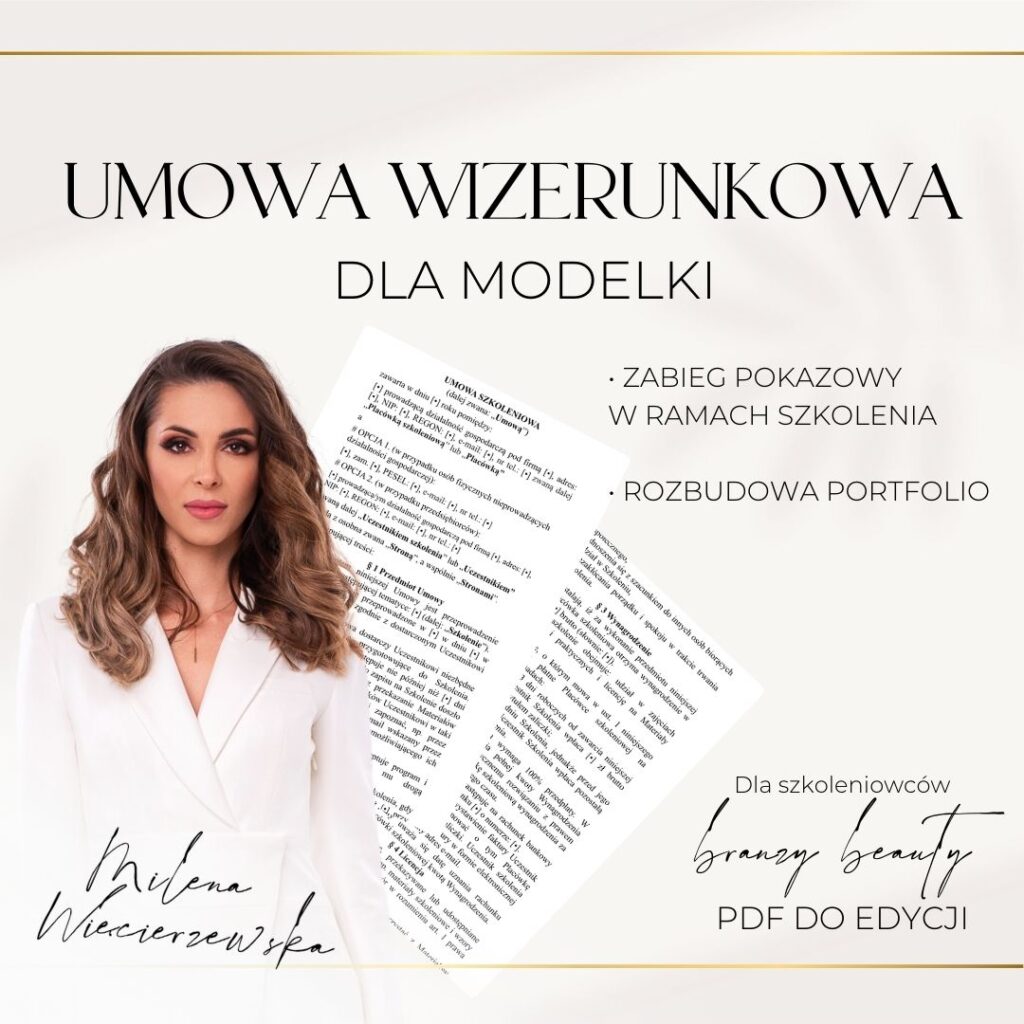 Umowa dla modelki (zabieg wykonuje kursantka) + Zgoda na wykorzystanie wizerunku