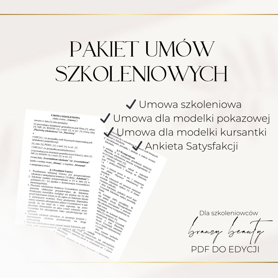 - Pełna personalizacja – wszystkie pliki są edytowalne, co pozwala dostosować je do indywidualnych potrzeb Twojego biznesu, specyfiki szkoleń oraz relacji z kursantkami, modelkami i klientkami.